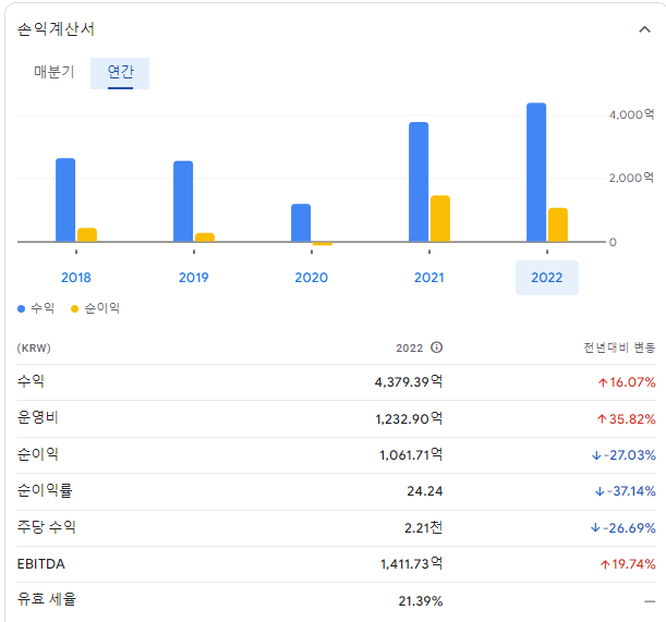 - 매출액 성장률: 2023년 12월 기준 최근 1년 동안 45.3% 증가