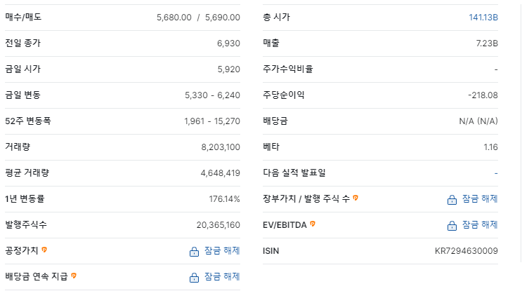 - 2022년: 3,890원 (24.6% 하락)